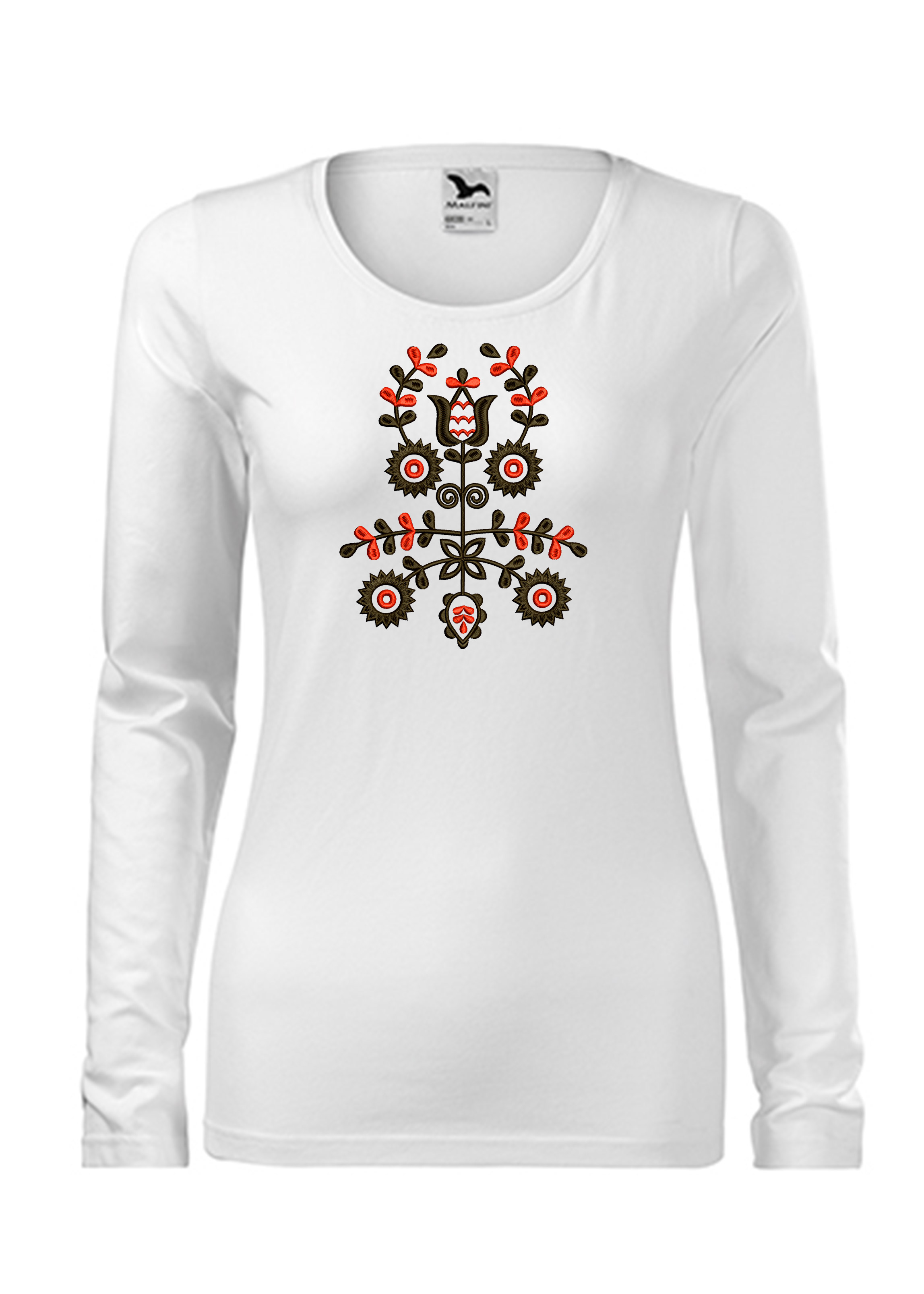 Dámske biele tričko (dlhý rukáv) s folklórnou výšivkou