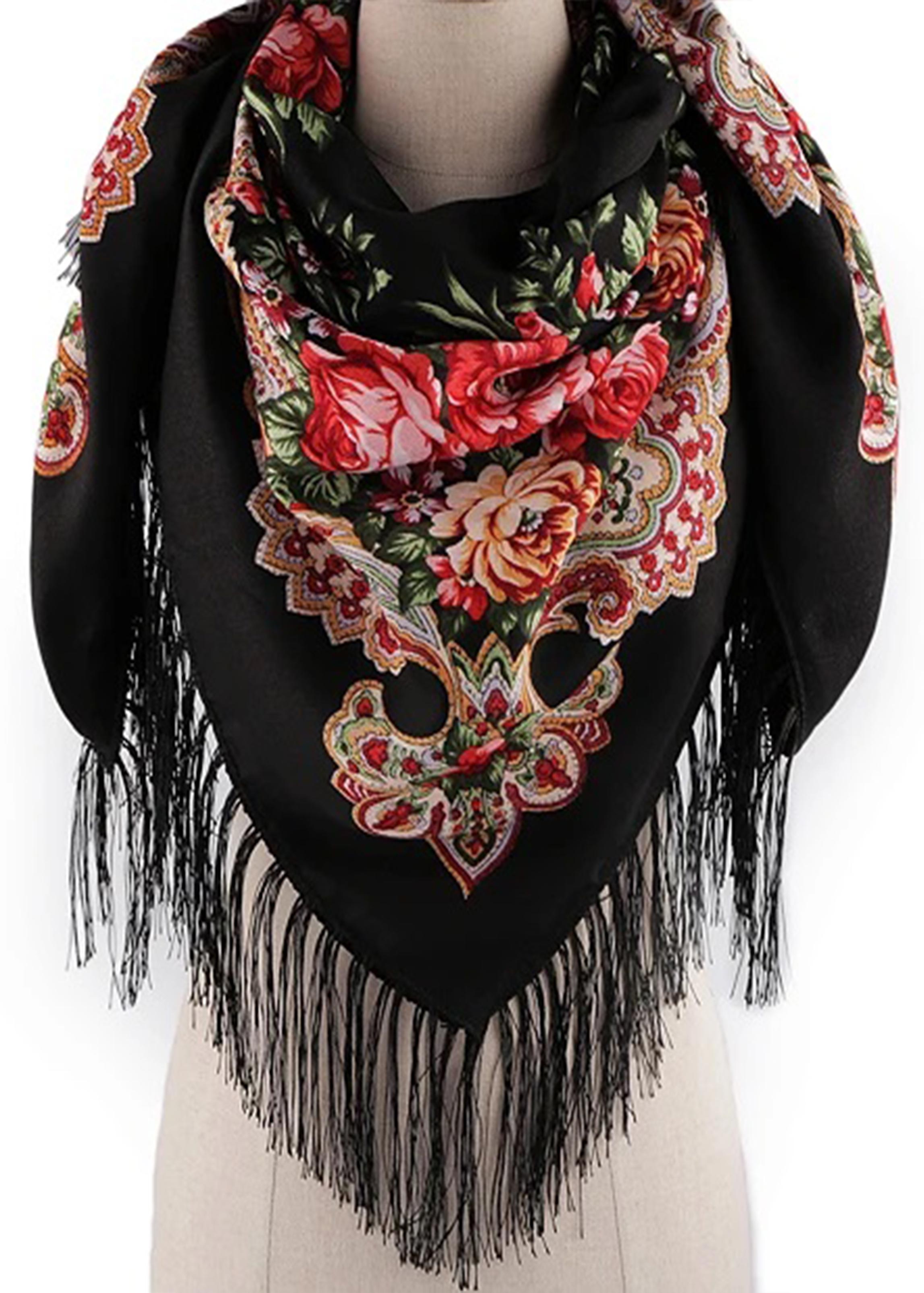 Veľká folklórna šatka je doslova ako z čias našich babičiek. Bývala súčasťou tradičného oblečenia a krojov. Je vyrobená z príjemného materiálu, na všetkých stranách je ozdobená dlhými strapcami , ktoré krásne splývajú. Veľký štvorcový tvar, môžete variabilne upraviť, využijete ju ako pri nosení pod krkom, tak aj na chrbte.