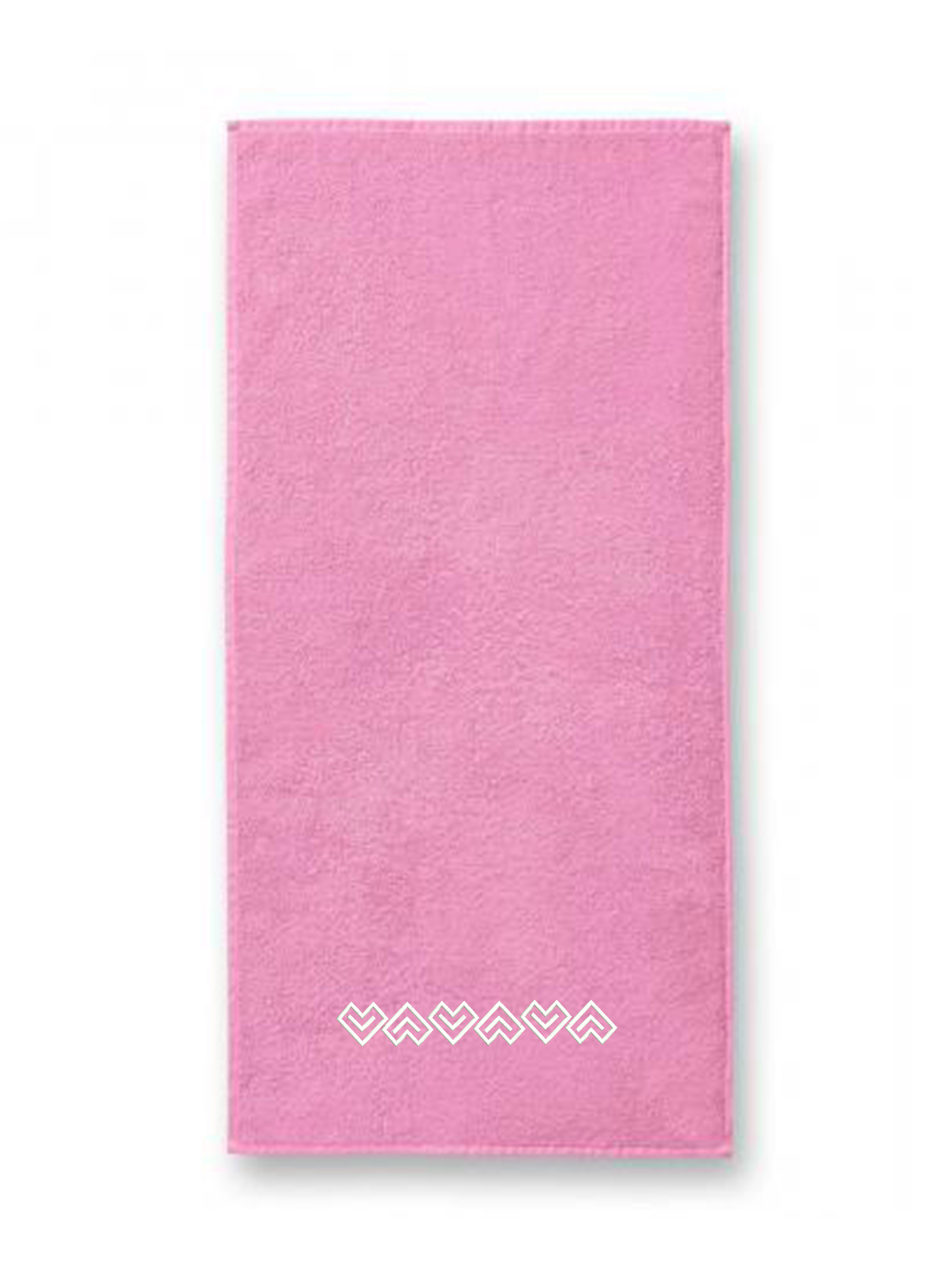 Ružový froté uterák s ľudovou výšivkou – Čičmianské srdcia
