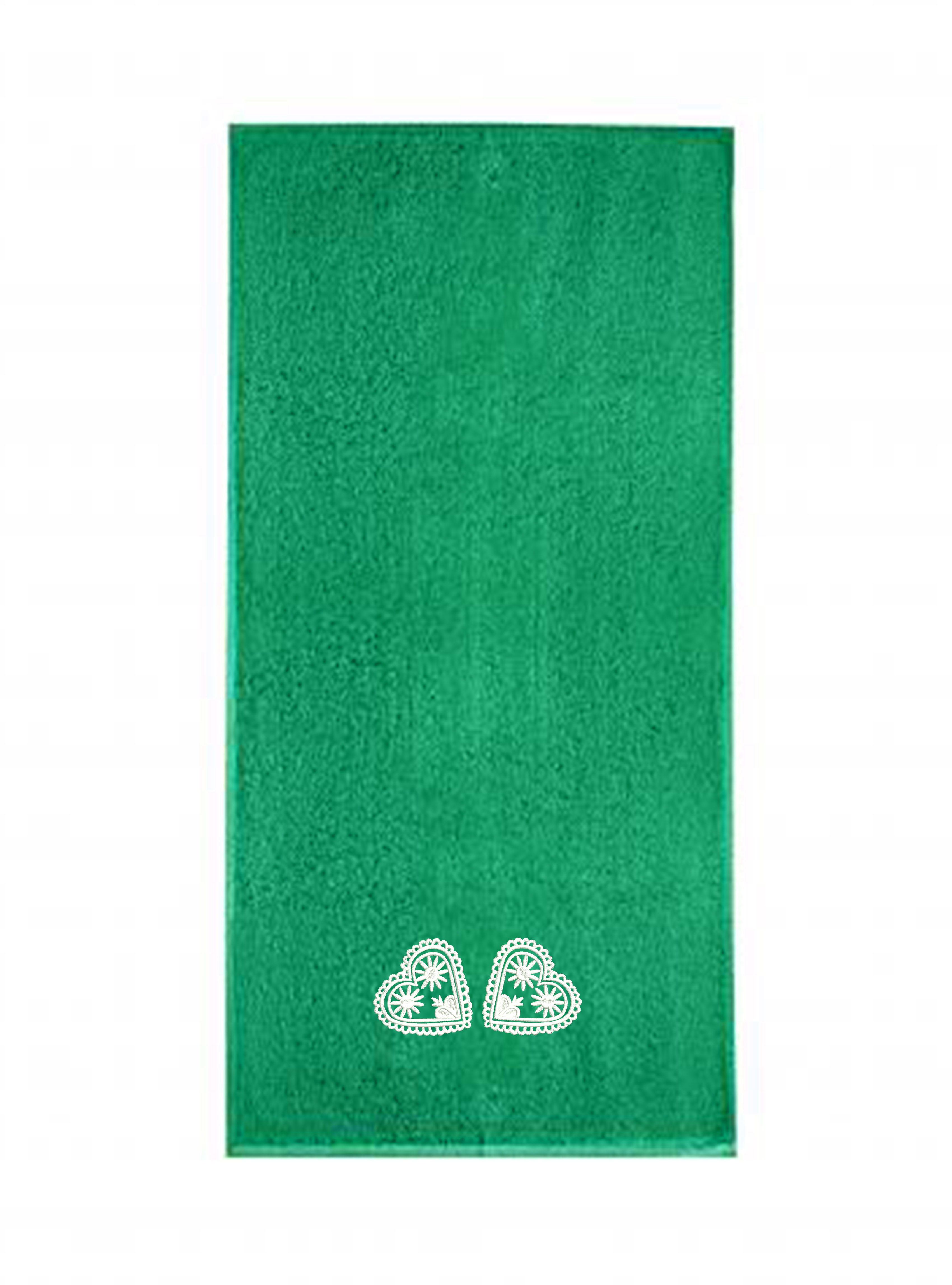 Zelený froté uterák s výšivkou ľudových srdiečok – Torysky